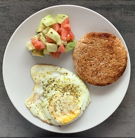 Chlebek usmażyłam na maśle na patelni. Podobnie jajko, oprószyłam je jedynie bazylią.