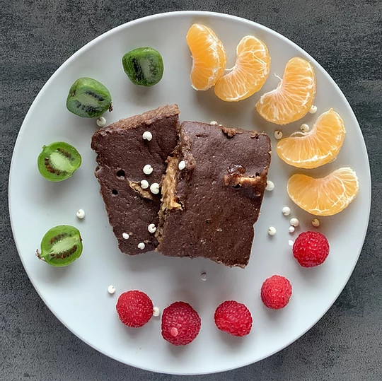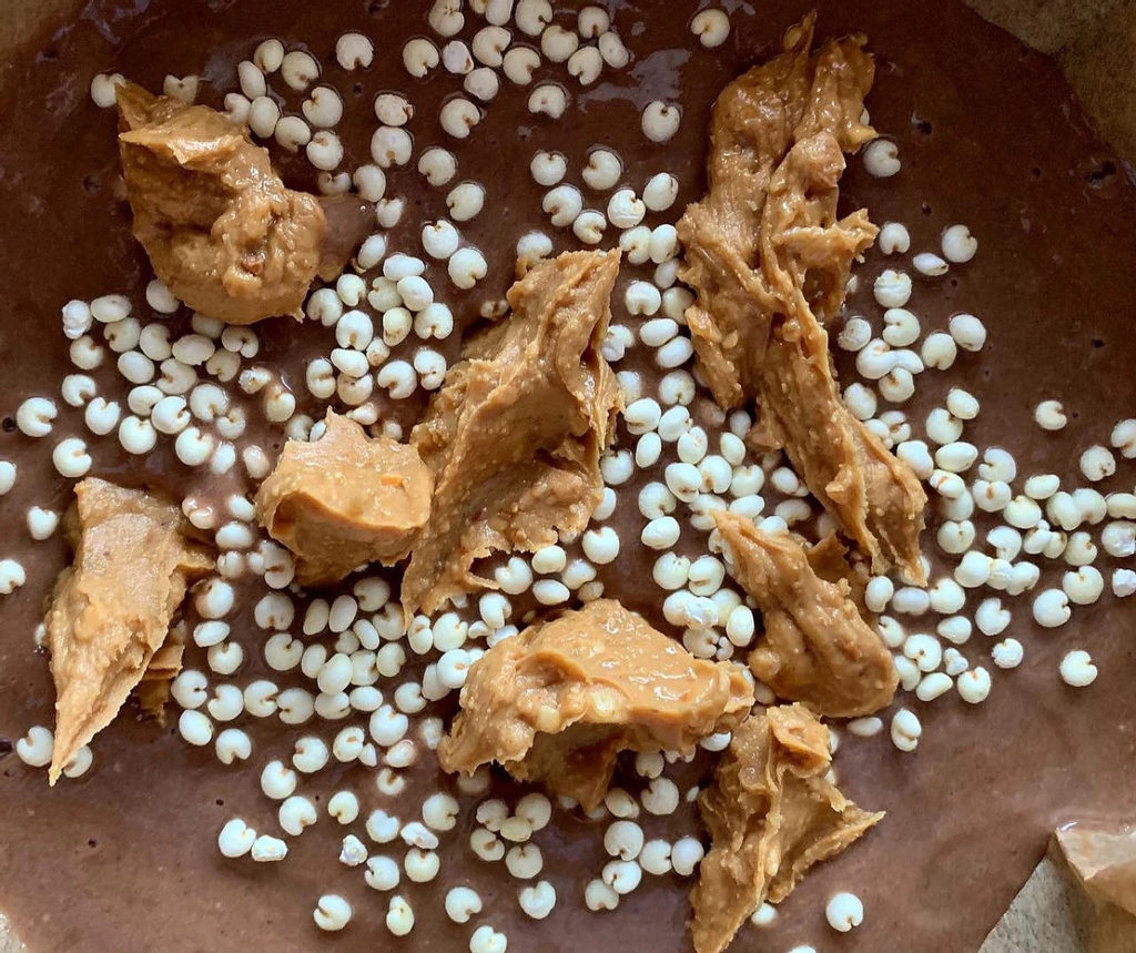 • 2 łyżki ekspandowanego prosa i dość sporo • masła orzechowego, najlepiej tak miejscowo (jak na ostatnim zdjęciu). Całość przykryć pozostałą masą. Piec w 180 stopniach przez ok 30 min (góra-dół).