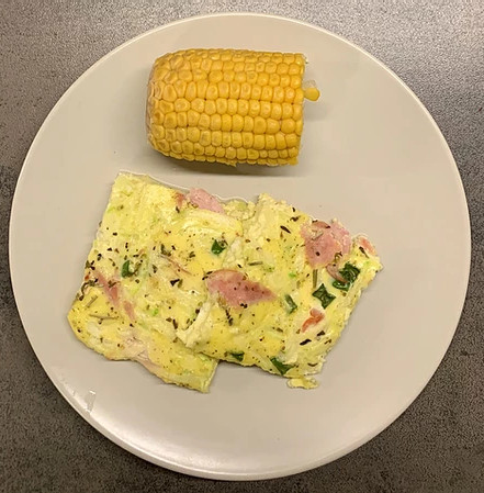 Omlet z serkiem wiejskim, szynką i warzywami.