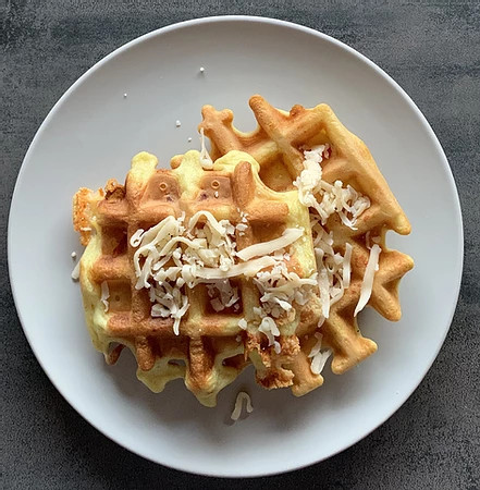 Chrupiące gofry z żółtym serem. Jedne z naszych ulubionych!
