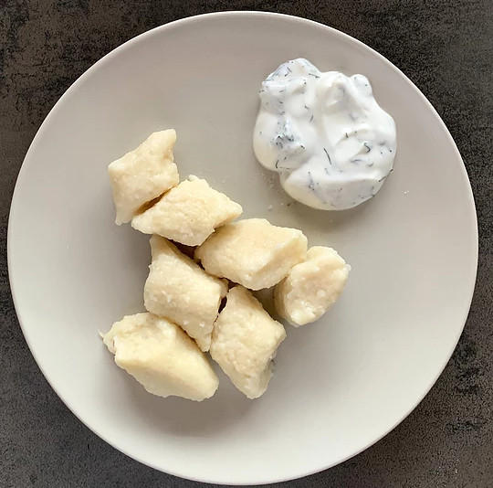 Sos to nic innego jak jogurt naturalny z koperkiem i ziołami prowansalskimi.