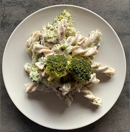 Cebulę i czosnek zeszkliłam na oliwie. Dodałam łososia i chwile podsmażyłam. Następnie dolałam odrobinę wody, brokuły i wymieszałam wszystko łyżką tak, by brokuły się rozpadły. Następnie dodałam śmietanę i pozostałe przyprawy. Do sosu wrzuciłam ugotowany makaron i wymieszałam łyżką.