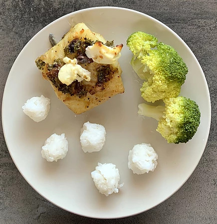 Dorsza umyć, ułożyć w naczyniu żaroodpornym, posypać pieprzem i skropić cytryną. Na patelni rozpuścić masło, zeszklić na nim cebulę i czosnek, dodać łyżeczkę mieszanki ziół. Dorsza zalać masełkiem z cebulą i czosnkiem. Posypać pietruszką i ułożyć odrobin ę ricotty. Piec ok 30 min w 180 stopniach.