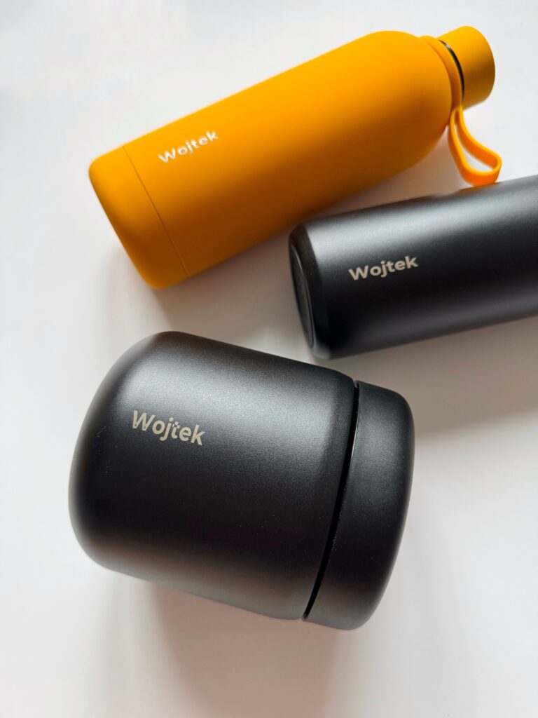 Dodatkowo łatwo się myje, jest szczelny – nie zdarzyło się, żeby pokrywka się obluzowała i coś wylało w plecaku. Pojemność 480 ml to taki „złoty środek” – nie za mały, żeby sycić, ale też nie tak wielki, żeby Wojtek musiał wozić połowę lodówki. Fajnie wygląda i to co bardzo mi się podoba to opcja personalizacji, więc marne szanse, żeby ktoś pomylił swój pojemnik z tym Wojtka 🙂